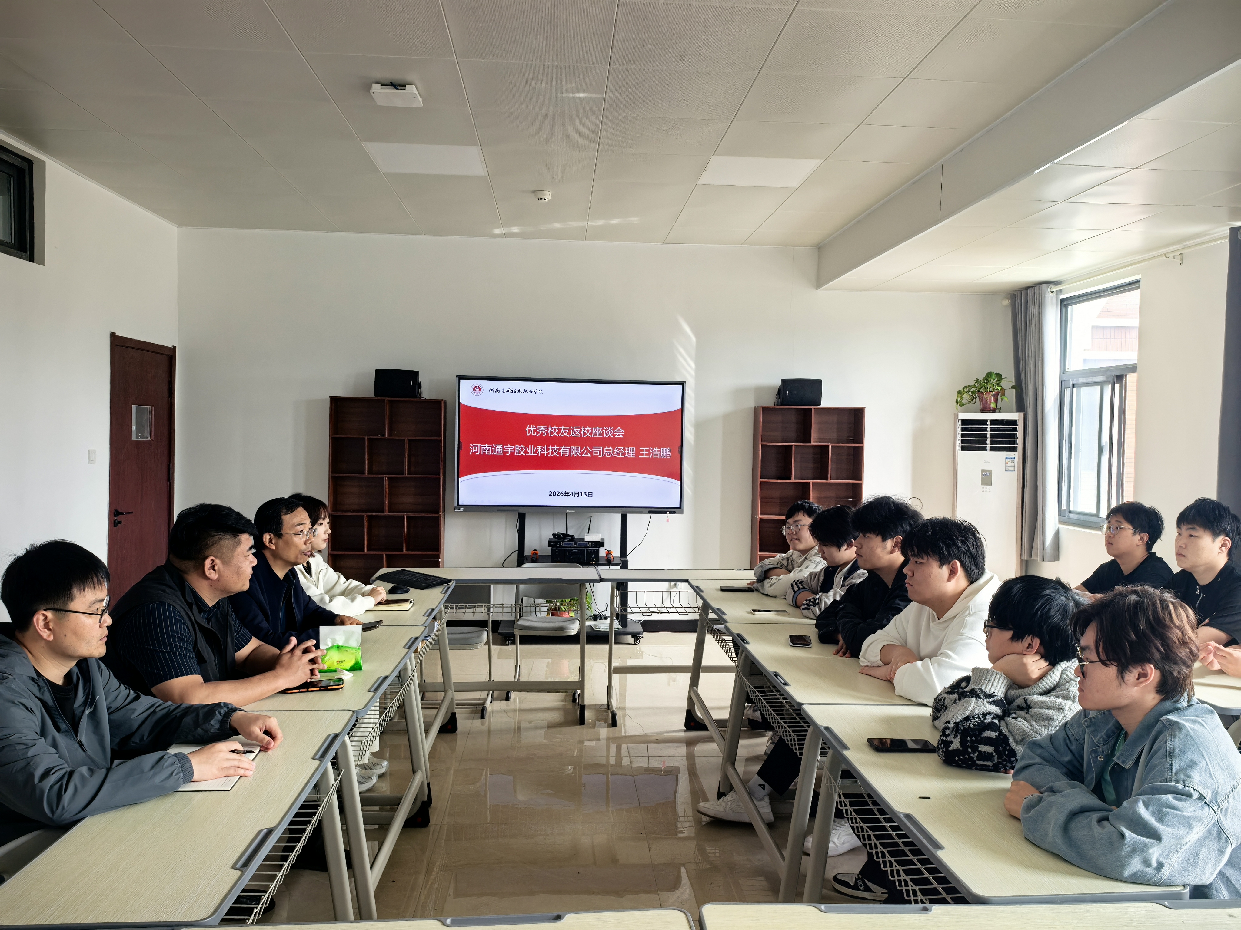 为进一步加强校友与学院的联系,助力在校学生明晰职业发展方向、提升职业素养与从业能力,4月13日,新能源与智能汽车学院特邀优秀校友河南通宇胶业科技有限公司总经理王浩鹏返校开展座谈交流活动。学院党总支书记付永、学工办主任董芳甫与在场学生共同聆听校友职场经验分享,共话成长与发展。